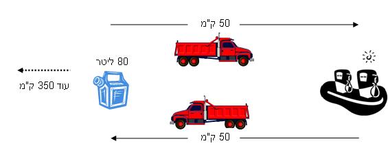 המשאית צריכה ליטר דלק לכל קילומטר ומכל הדלק שלא מספיק ל-180 ליטר. את הדלק שיש בטנק אפשר לחלק, להשתמש בחלק ממנו עבור הנסיעה ולהשאיר את היתרה בתחנות האחסון. אין גבול למספר הפעמים שהמשאית יכולה לחזור לתחנת הדלק שבתחילת הדרך. אפשר להשאיר כל כמות שרוצים כלשהי בתחנות אחסון לאורך הדרך.