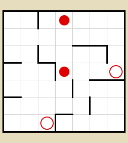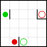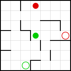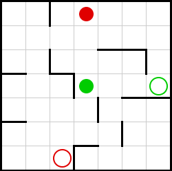 לפניכם ארבעה מבוכים. בכל מבוך יש להזיז את הכדור האדום אל המעגל האדום. כאשר מזיזים את הכדור האדום בעזרת מקשי החצים, הוא יתגלגל עד הקיר הבא בכיוון “הדחיפה” וייעצר, ומשם אפשר לתת לו כיוון חדש. עליכם למצוא את מספר התנועות הקטן ביותר שאיתן אפשר להגיע בכל לוח עם הכדור האדום למעגל האדום.