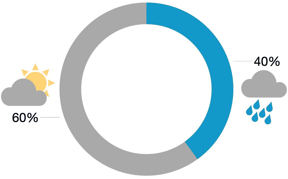 لستم الوحيدين، فالكثيرون ليسوا على ثقة بأنّهم يفهمون ما المقصود بهذه النّسبة. أخطأ معظم المشاركين في دراسة أُجريت في الولايات المتّحدة الأمريكيّة في تفسير المصطلح "اِحتمال هطول الأمطار"، على الرّغم من أنّهم كانوا طلّابًا جامعيّين مثقّفين. وأظهرت دراسة أخرى أنّ الرّاصدين الجوّيّين أنفسهم لا يُعَرِّفون المعطيات بشكل دقيق. ندعوكم لِفحص مدى فهمكم نشرة الرّاصد الجوّيّ من خلال الإجابة عن الأسئلة في الاستبيان القصير التّالي، نشرح بعدها معنى المصطلح "اِحتمال هطول الأمطار". هيّا، لنرى هل ستُفلِحون أكثر من طلبة الجامعة الأمريكيّين.