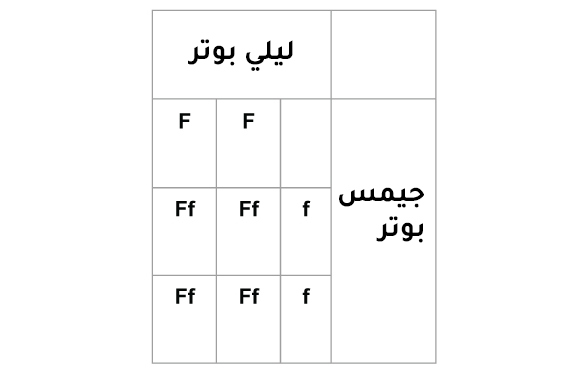قد يسأل سائل، كيف لكلّ هذا أن يساعدنا بتوقّع السمات الّتي يرثها الجيل القادم؟ وللإجابة سنأخذ هاري مثالًا، وجه أمّه ليلي كان منمّشا بعكس وجه أبيه جيمس. إذا فرضنا أنّ كليهما مطابق الزيغوت لهذه السمة فإذًا استنادًا إلى ما شرحناه مسبقًا، فإنّ نمط ليلي الوراثيّ هو FF ونمط جيمس ff، إذا ركّزنا جميع التوليفات المحتملة لنسل جيمس وليلي في جدول، سنرى أنّ النمط الوراثيّ لجميع الورثة سيكون Ff ولذا فإنّ النمط الظاهريّ سيكون ظهور النمش.