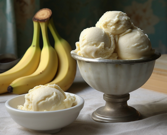 قوام قشدي ومخمليّ. بوظة الموز المهروس بجانب الموز الطازج