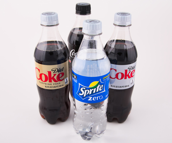 كشفت مراجعة من عام 2022 أنّه لا توجد علاقة بين استهلاك المحلّيات والإصابة بالسرطان (باستثناء سرطان المثانة). قناني المشروبات الغازيّة الّتي تحوي مُحلّيات صناعيّة.| Darryl Brooks, Shutterstock