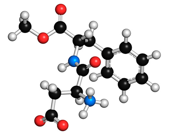 من الصعب حتّى من المستحيل الوصول إلى حدّ الاستهلاك الأقصى غير الآمن للمُحلّى الصناعيّ. جزيء الأسبارتام.| Molekuul, Science Photo Library