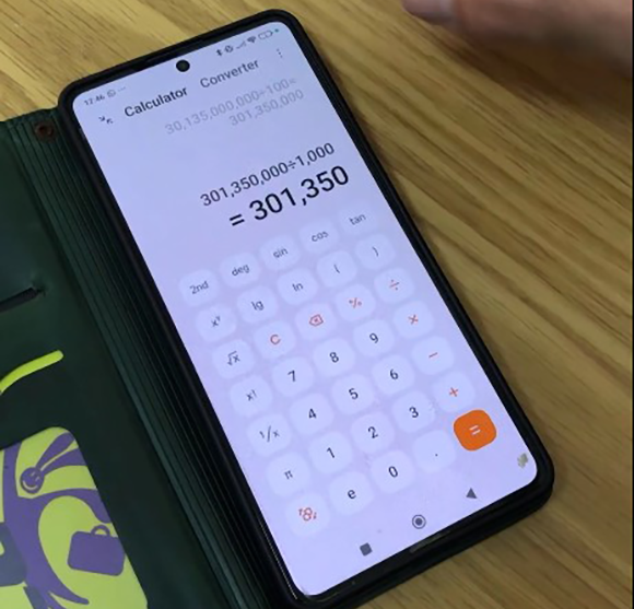 تُحسَب سرعة الضوء بواسطة ضرب طول الموجة الذي قيسَ في التجربة بعدد الأمواج التي تمرُّ بالثانية الواحدة والمكتوب على الجدار الخارجي الخلفيّ للجهاز. تظهر في الصورة سرعة الضوء التي حُسبت في التجربة  | تصوير: يفعات جروس