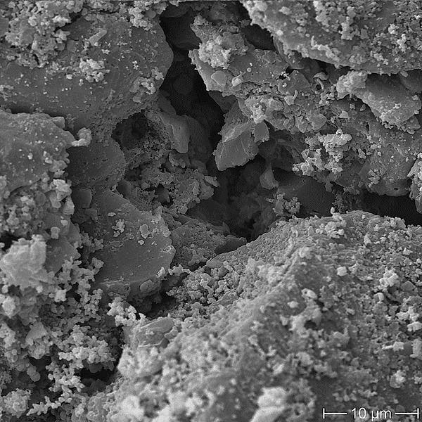مبنى المسامات والتشققات الخاصة بالفحم المُنشطّ من خلال عدسة المجهر | تصوير: Mydriatic ويكيبيديا