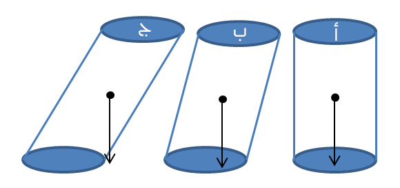 فقط عندما يكون مركز كتلة الجسم عمودياً فوق نقطة المُتّكأ فإنه لا يسقط، لذلك تبقى الأسطوانات أ وَ ب ثابتة بينما الأسطوانة ج سوف تسقط.
