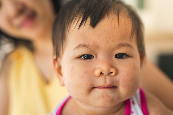 تمّ إحصاء 36 حالة حصبة في البلاد منذ تشرين الأوّل سنة 2023. فتاة مريضة تعاني من طفح جلديّ | Shutterstock, NatUlrich