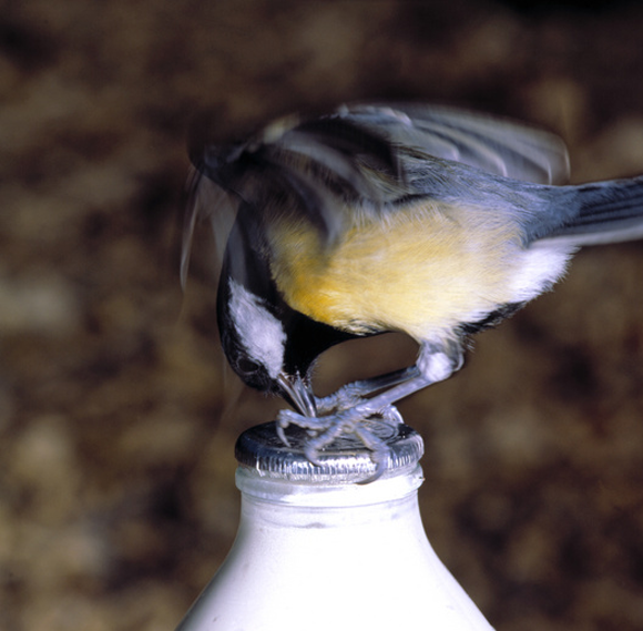 تعلّم القراقف من بعضهم البعض كيفيّة سرقة الحليب، لكنّهم تمكّنوا أيضًا من معرفة كيفيّة تمزيق الغطاء والحصول على السائل اللذيذ. القراقف على زجاجة الحليب | Nigel Cattlin / Science Photo Library