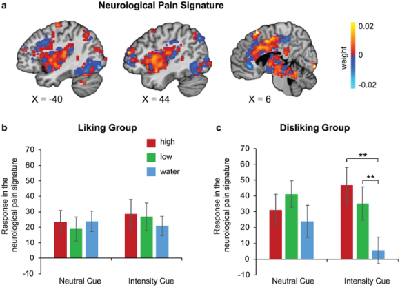 إلى جانب ذلك، فحص الباحثون استجابة الدماغ للألم بقياس نشاط المناطق المرتبطة بالإحساس بالألم، ومقارنة ذلك بالحالة الطبيعيّة عند شرب الماء، سواء مع معرفة مسبقة بدرجة الحرارة أو بدونها.