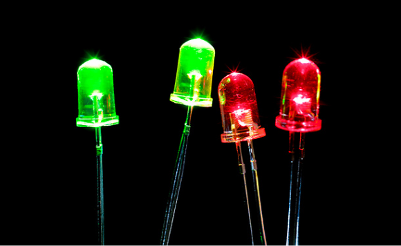 تعتمد على جريان التّيّار الكهربائيّ في المادّة شبه الموصلة باتّجاه واحد، ما يؤدّي إلى انبعاث ضوء بأطوال أمواج محدّدة. المصابيح الثّنائيّة الباعثة للضّوء (LED) الخضراء والحمراء | Science Photo Library