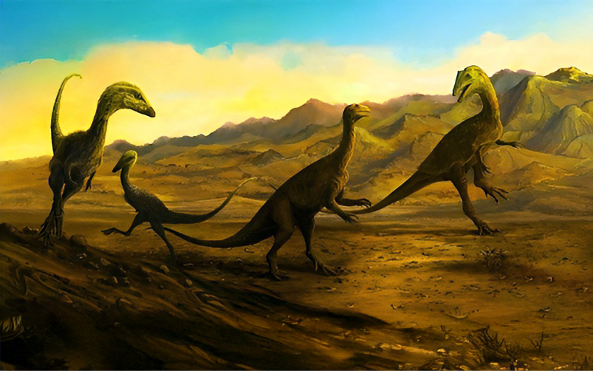 الثّيروبودات الكبرى كانت تتغذّى على طيف متنوّع من الفرائس. الثّيروبودات تحيط بديناصور نباتيّ من فصيلة الزّوروبودومورفيّات | المصدر: Mark P. Witton / Science Photo Library