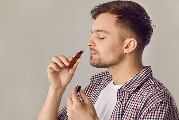 اكتشف الباحثون في تجربة سابقة أنّ رائحة دموع النّساء تقلّل من مستوى هرمون التّستوستيرون لدى الرّجال. يظهر في الصّورة رجل يشمّ محتويات زجاجة | Studio Romantic, Shutterstock