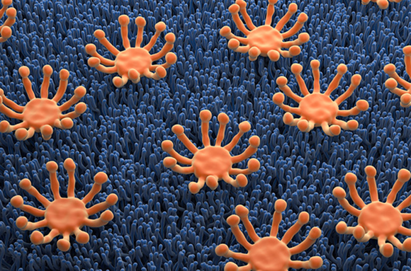 قام الباحثون بفحص ما إذا كان الأنف البشريّ يحتوي على مستقبلات شمّ تستجيب للدّموع، ووجدوا أربعة أنواع من المستقبلات الّتي تفاعلت معها. مستقبلات الشّمّ في الأنف | رسم توضيحيّ: Nemes Laszlo / Science Photo Library.
