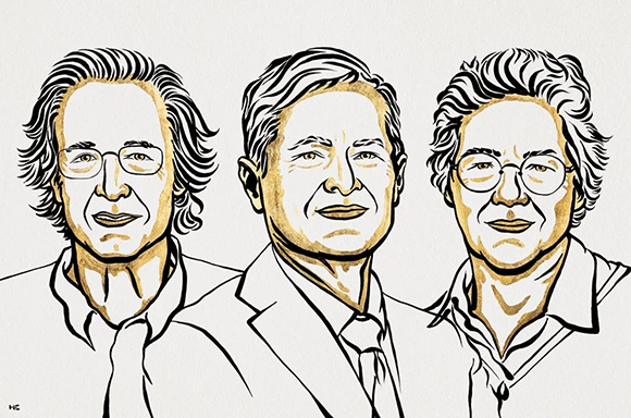 أسهموا في تطوير طرق إنتاج ومضات ضوئية قصيرة للغاية، والتي تستخدم في دراسة العمليات السريعة. من اليمين إلى اليسار: لولييه، كراوس وأجوستيني | Nobelprize.org