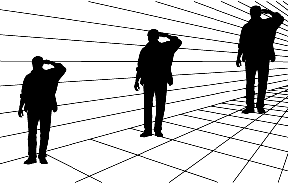 جميع الأجسام هي ذاتها، ولكنّ إشارات المنظور تقنعنا بأنّ "الأبعد" يكون أكبر. | المصدر: Darq, Shutterstock