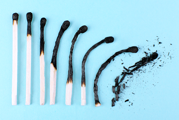 نجحت استمارة بسيطة في تشخيص الاحتراق النّفسيّ. في الصّورة، عيدان الثّقاب المحروقة، ضمن هذا الاختبار. | Africa Studio, Shutterstock