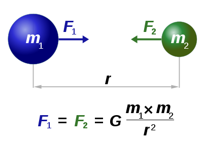 חוק המשיכה האוניברסלי: ישנה משיכה בין כל שני גופים בעלי מסה. שני גופים ימשכו ביחס ישר למסתם, וביחס הפוך לריבוע המרחק שביניהם.