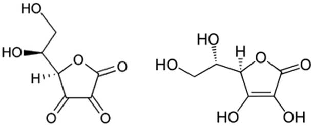 ויטמין C בצורתו המקורית (מימין) והמחומצנת (משמאל) – התמונות לקוחות מויקיפדיה.