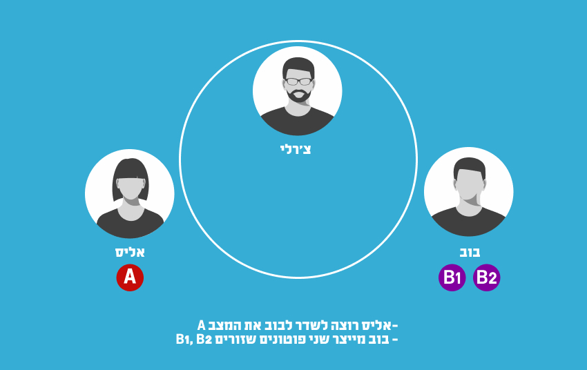 זה המקום שאליו נכנס הניסוי החדש שערכו חוקרים מאוניברסיטת נורת’ווסטרן בארצות הברית, בשיתוף עובדים מחברות התקשורת וההצפנה Ciena ו-NuCrypt. הניסוי נועד להעביר תקשורת קוונטית מאליס אל בוב לאורך מקטע מבוקר של סיב אופטי פעיל שאורכו 30 קילומטר, בזמן שעוברת בו גם תעבורת אינטרנט רגילה. בדיוק באמצע הדרך בין אליס לבוב הוצבה תחנת התיווך של צ’רלי. הפוטונים של אליס ובוב נוצרו במערכת אופטית שמורכבת מלייזר, גביש ליתיום-ניובייט ורכיבים אופטיים נוספים. כשפוטון מהלייזר פוגע בגביש הוא מתפצל לשני פוטונים שהאנרגיה שלהם נמוכה יותר. כך נוצר זוג פוטונים שיכולים להיות שזורים קוונטית.