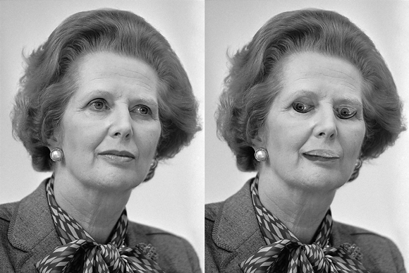 Can you find the differences? Faces of Margaret Thatcher, inverted | Wikipedia, taken from a photo by Rob Bogaerts