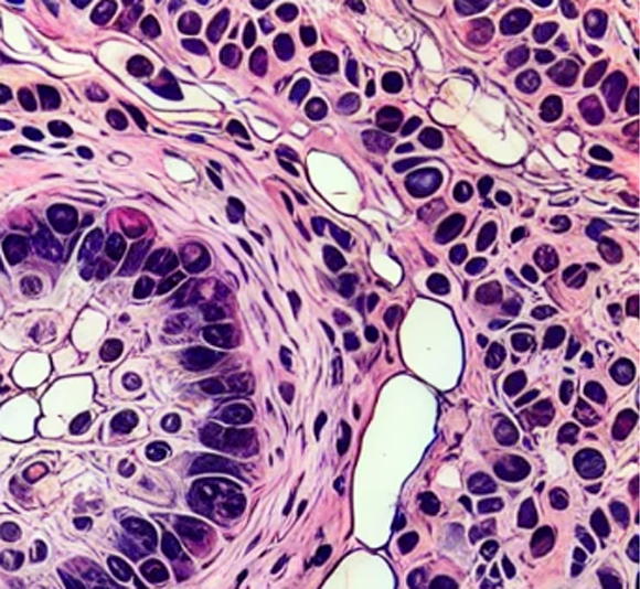 The image appears to show a histological sample illustrating tissue structure, with the different shades and textures corresponding to different cell types. In reality, it was generated by an AI-based image generator | Image courtesy of Proofig AI.
