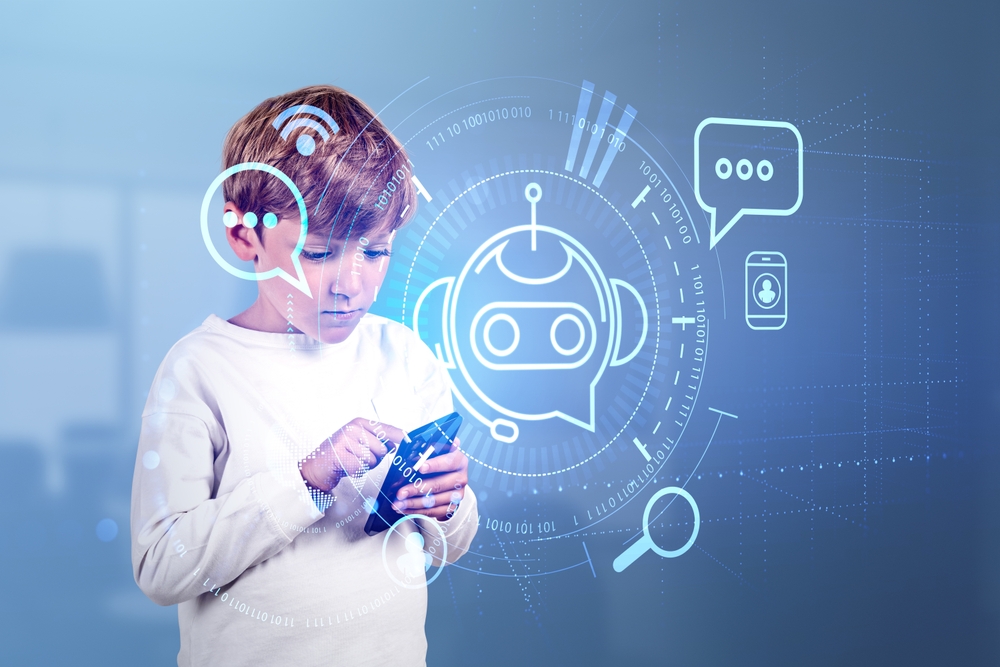 Young people tend to rely more heavily on AI tools, with studies showing a negative correlation between usage and critical thinking scores. A child using AI on a smartphone | Shutterstock, ImageFlow