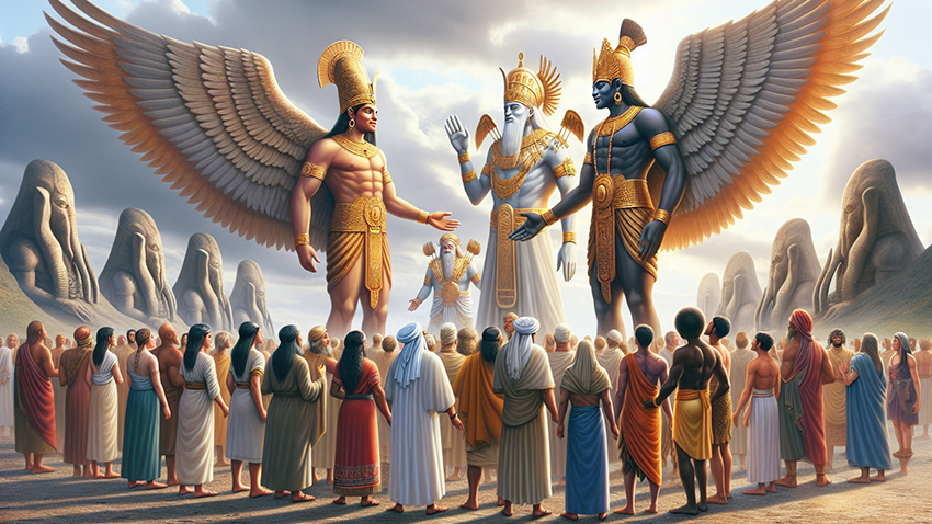According to the theory’s originator, the Anunnaki came to Earth about 400,000 years ago to mine gold to repair their planet’s atmosphere. Anunnaki among humans | Shutterstock AI Generator