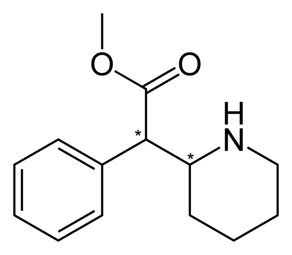 The molecular structure of Methylphenidate, the active substance of Ritalin | Wikipedia