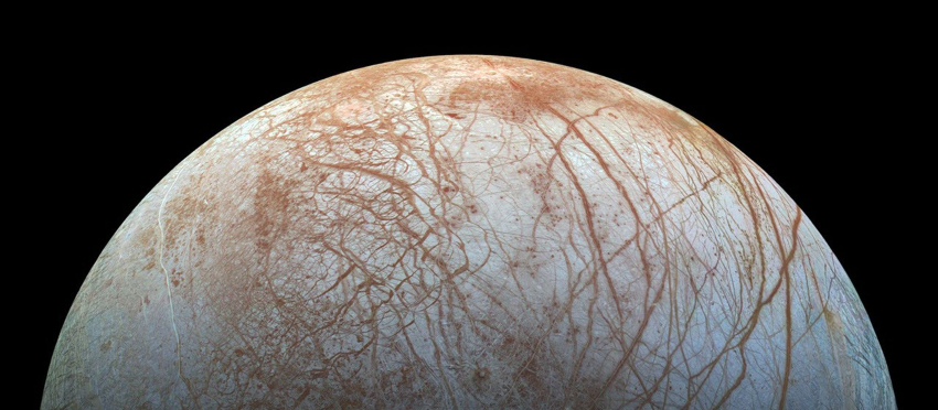Material exchange likely occurs between the surface and Europa’s internal ocean. Surface of Europa as captured by NASA’s Juno spacecraft | Source: NASA/JPL-Caltech/SwRI/MSSS