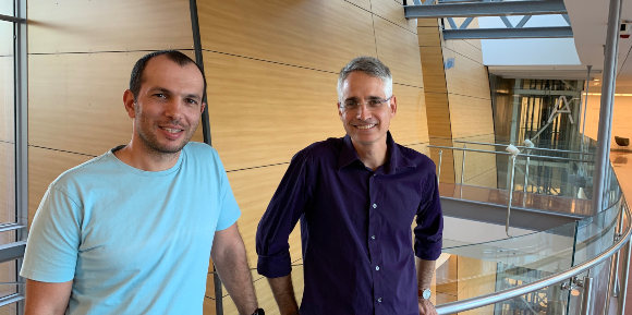 A bacteria with great environmental importance, which took more than a decade of work to develop. Milo (right) and Gleizer at the Weizmann Institute. Photograph: Eyal Kreiger