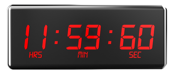 Without leap seconds, clock time would fall out of sync with the actual times of sunrise and sunset. A digital clock displaying an added second | AlexLMX, Shutterstock.