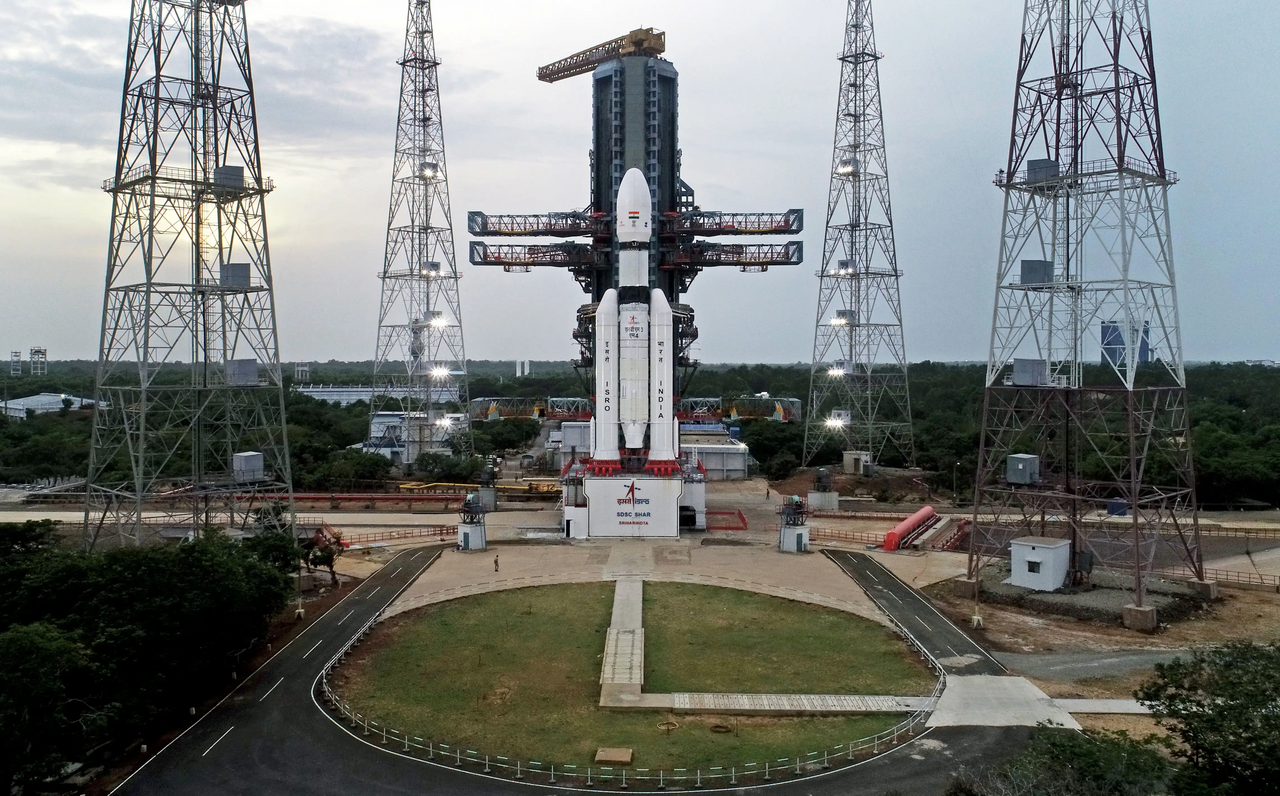 Anticipated to be the first spacecraft to achieve a soft landing near the Moon's pole. The Chandrayaan-3 mission on an LVM3 M4 rocket set for launch | Photo: Indian Space Agency, ISRO, Wikipedia.
