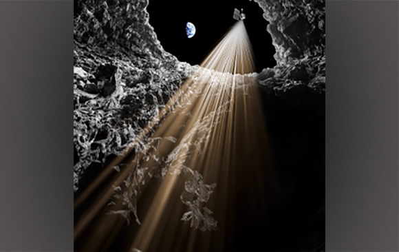 Indications of a Horizontal Lunar Cave with Surface Access | Illustration by A. Romeo, incorporating elements from NASA imagery.