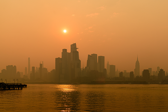 "It’s been a brutal summer in large parts of North America, Asia, Africa, and Europe". Air pollution in New York City during the fires in Canada | Shutterstock, Brian Youchak