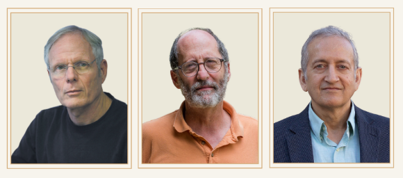 Potential applications in quantum computing, but the real focus is on the beauty of physics. From left: Jain, Eisenstein, and Heiblum | Photos: Wolf Foundation