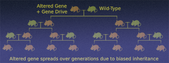 The advantage of using CRISPR to create gene drives is to attach it to any gene and cause it to make changes to the second copy of the same gene, which will occur as the genetically engineered individual will mate with a wild type individual. It is also possible to engineer a self-duplicating system and create two copies of the gene in every generation, so the probability of inheriting the desired gene will be 100 percent.