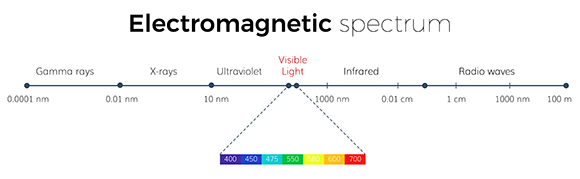The science of spectroscopy, in which each color represents a distinct wavelength of radiation, has enabled us to determine the composition of stars. The electromagnetic spectrum | AIexVector, Shutterstock