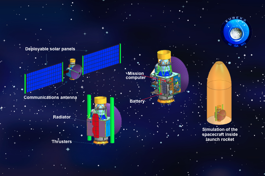 A relatively small spacecraft, based on an existing platform and carrying only a few instruments. Preliminary schematic design of the Eureka spacecraft | Illustration: Israel Aerospace Industries