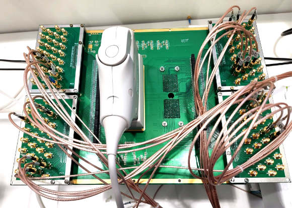 It’s possible to push past physical limits and extract more information with fewer resources. Prototype of the advanced medical ultrasound system | Photo courtesy of the Eldar Lab.