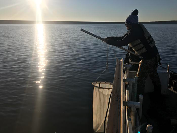 Even freshwater habitats on land are not protected from plastic particles. Researcher sampling water from a lake in Kansas, U.S., to test the concentration of plastic particles in them | Ted Harris