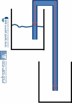 The amazing thing about the siphon is that while generally the water goes from a higher plane to a lower plane, it first gets sucked upwards on the short arm of the U-shape.