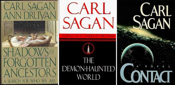 The book Contact, published in 1985, was a major success and later adapted into a Hollywood film starring Jodie Foster. Contact, The Demon-Haunted World, and Shadows of Forgotten Ancestors—covers of several of Sagan's books