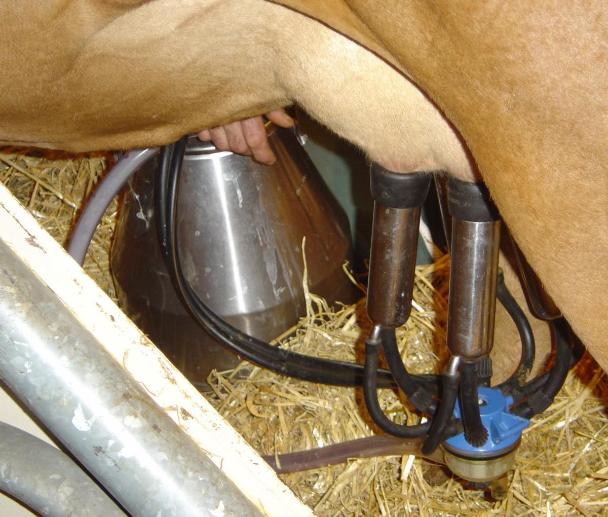 מתקן חליבה אוטומטי | A cow milking machine Photographed by myself at the Paris Agriculture Salon, 2004; Copyright © 2004 David Monniaux