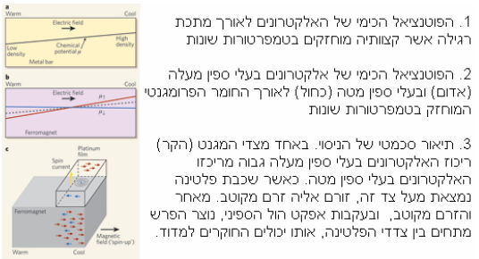 לאחרונה, הצליחה קבוצת מדענים להדגים כי באמצעות טכנולוגיה פשוטה יחסית ניתן ליצור מקור מתח עבור זרמי ספין. טכנולוגיה זו מתבססת על אפקט הדומה לאפקט ידוע בשם "seebeck effect". אפקט זה הינו היווצרות מתח חשמלי, בין קצוותיה של מתכת, המוחזקים בטמפרטורות שונות.