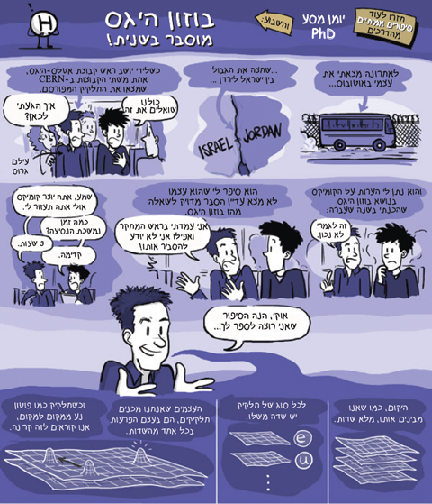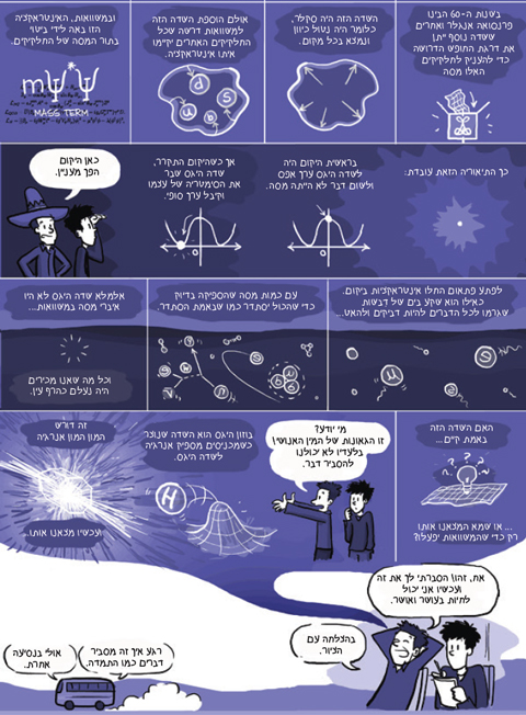 בחודשים האחרונים רוחשים כתבי העת המדעיים והפופולריים ידיעות על איתורו של בוזון היגס, שזכה בכלי התקשורת לכינוי "החלקיק האלוהי". הפעם הכנו למענכם חוברת קומיקס קצרה המתארת שיחה עם אחד המדענים הבולטים במאמץ המוצלח שהביא לגילויו של החלקיק, פרופ' עילם גרוס ממכון ויצמן.