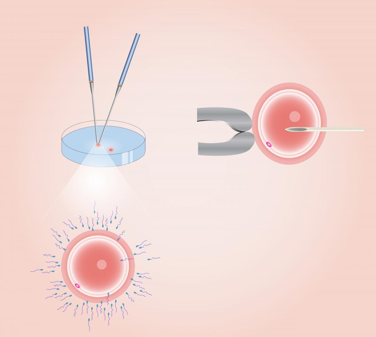 במעבדה מבודדים את הביציות בצלחת פטרי. מכאן פתוחות בפניהן שתי דרכים להפריה.בראשונה מדגירים את הביצית עם אלפי זרעים של הגבר, כך שתוך כמה שעות בצלחת אמור להתרחש הפריה טבעית. אפשרות שנייה היא להזריק במחט זרע בודד לתוך הביצית. הבעיה בשיטה הזאת היא שאי אפשר לוודא שאיכות הזרע שבחרנו טובה מספיק.