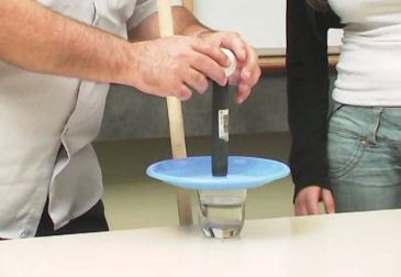 - ממלאים את הכוס במים עד מחציתה ומניחים אותה קרוב לשולי השולחן.