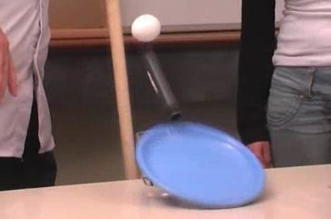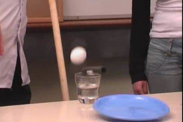 בניסוי הזה נראה איך כוח ההתמדה מגן על ביצה ומונע ממנה לעוף אפילו כשנותנים לה מכה חזקה.