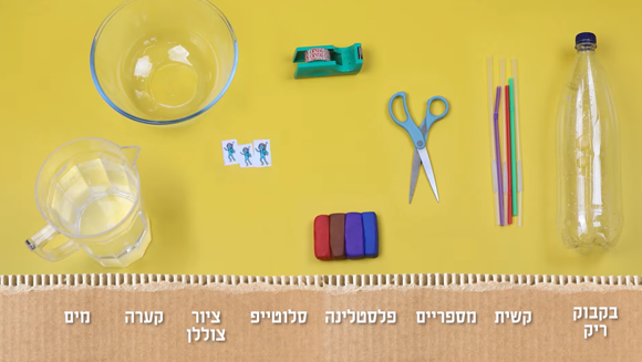 - בקבוק פלסטיק ריק ושקוף (עדיף של משקה מוגז)