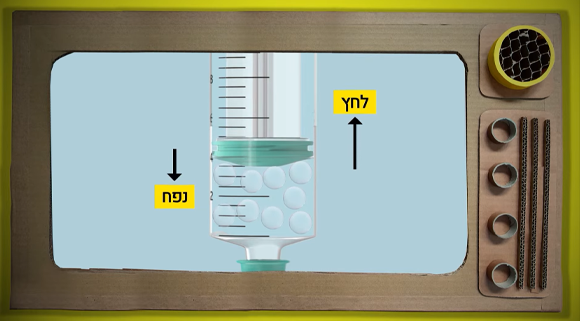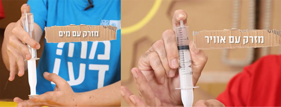 כשלוחצים על גז – הוא נדחס, כלומר מקטין את נפחו. הדגמה של חוק בויל עם מזרק | רונית צוויג
